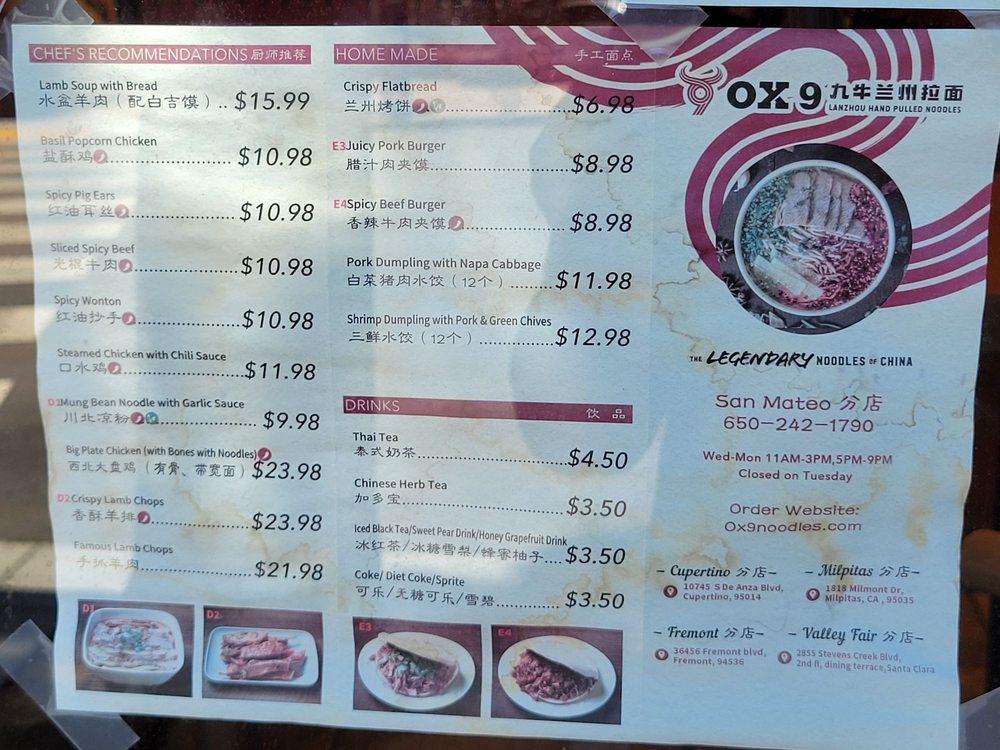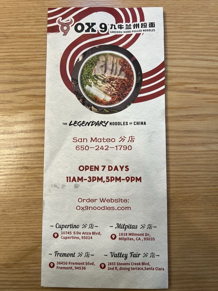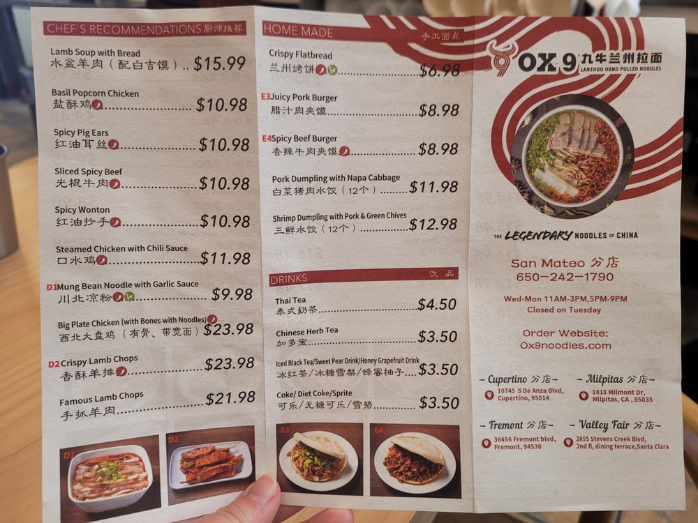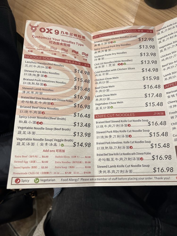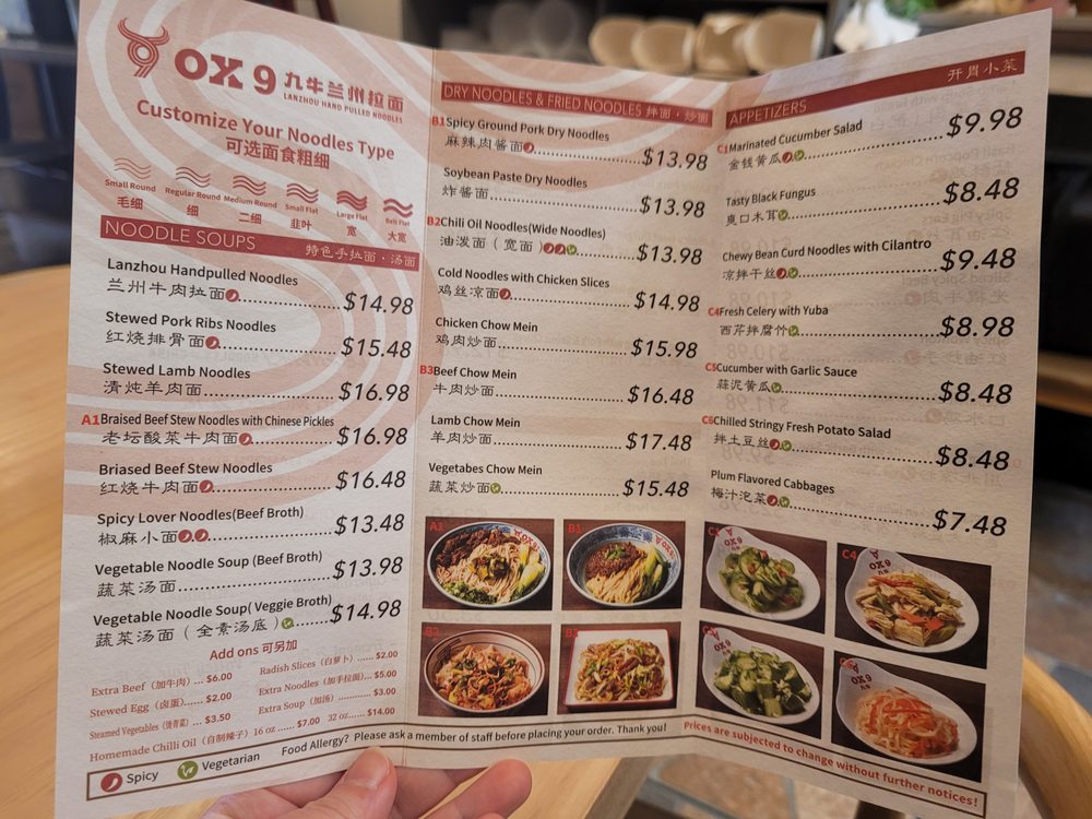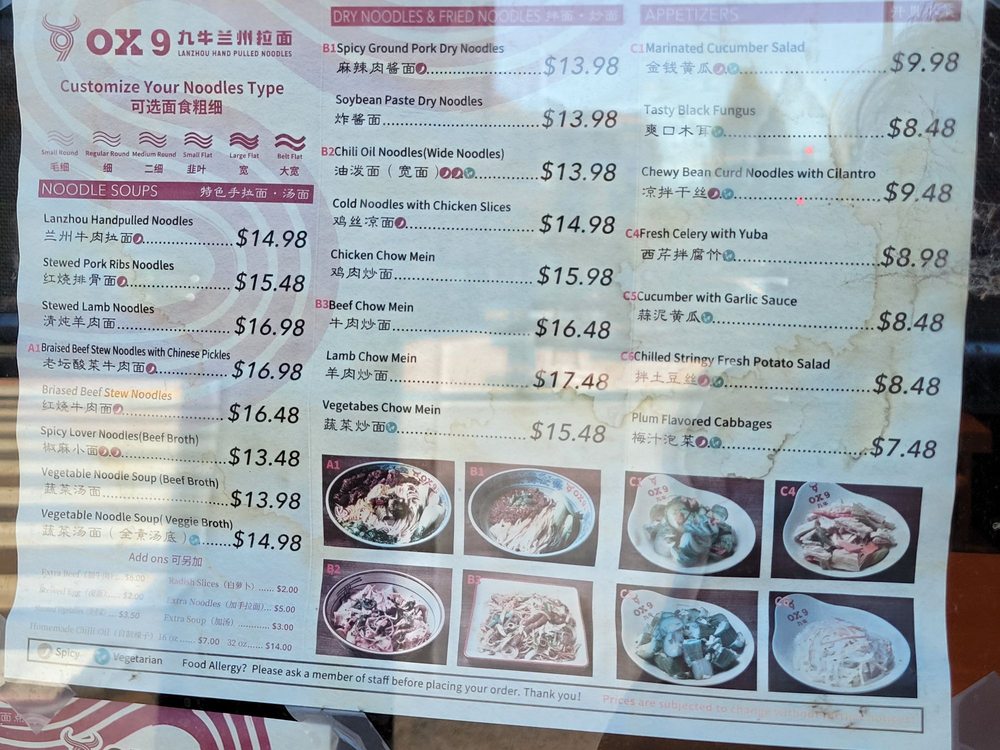 Ox 9 Lanzhou Handpulled Noodles Menu (Update 2025)